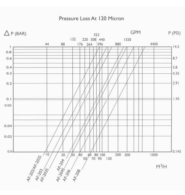 过滤器清洁时的压力损失:0.1bar(2psi)